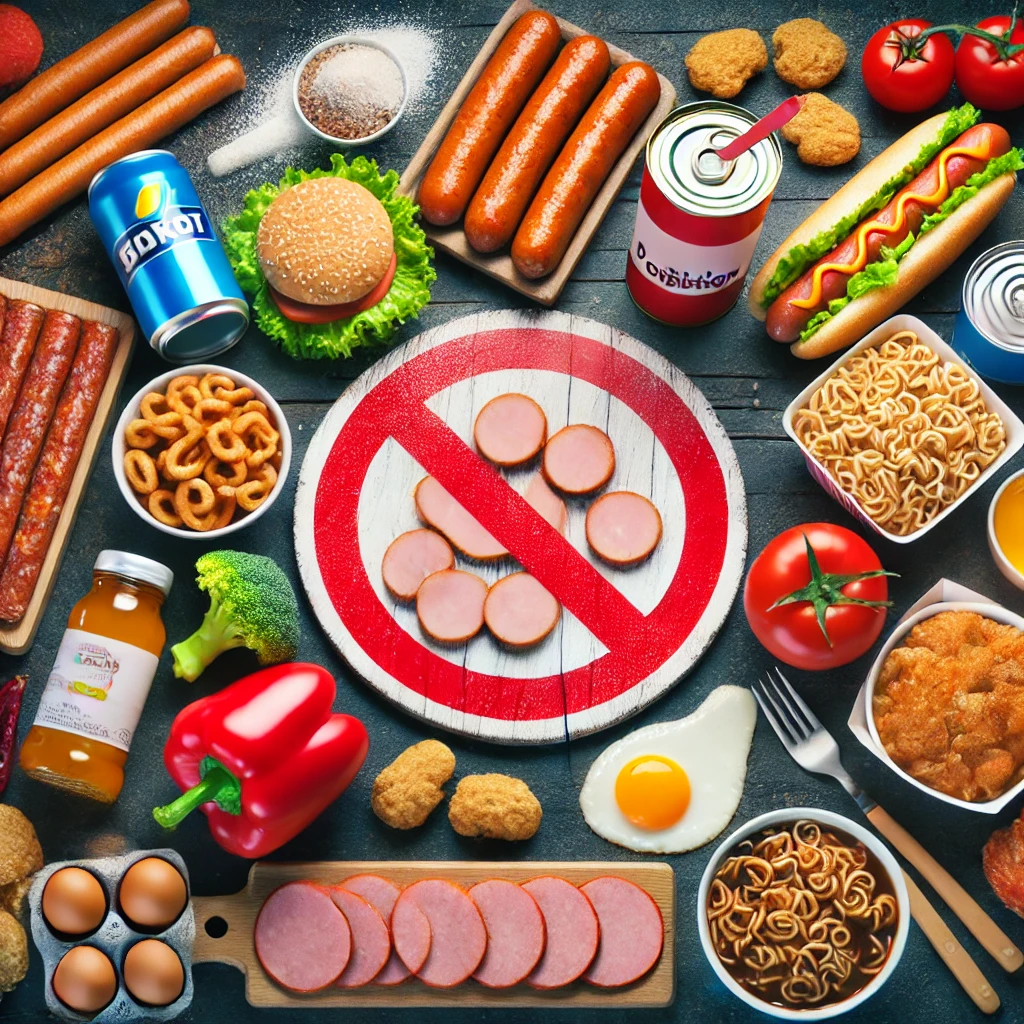 - 가공식품: 콜라, 인공첨가물이 많은 음료 및 스낵