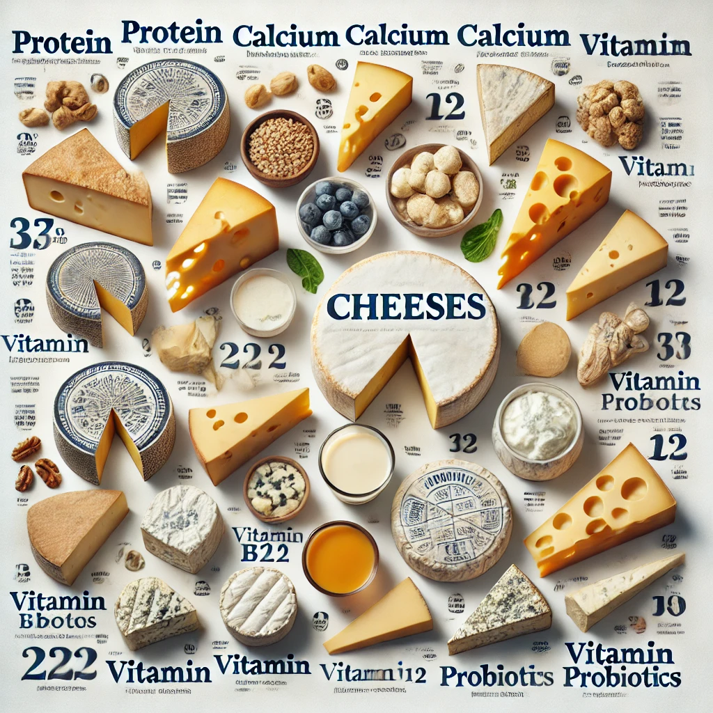 치즈에는 우리 몸에 필수적인 다양한 영양소가 포함되어 있습니다. 그중에서도 특히 단백질, 칼슘, 비타민 B12, 프로바이오틱스는 건강을 유지하는 데 중요한 역할을 합니다.